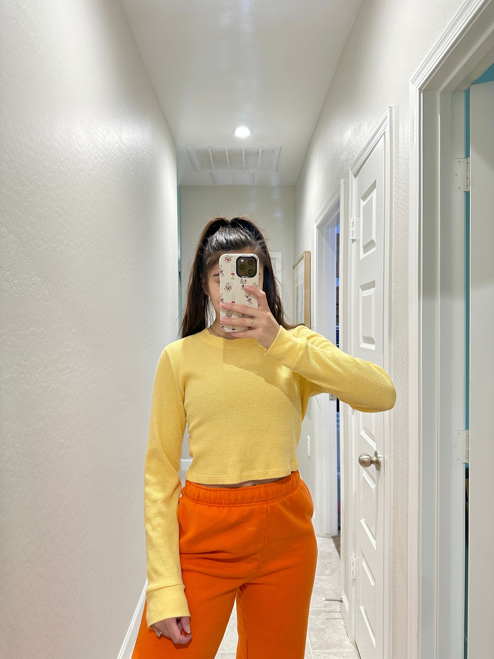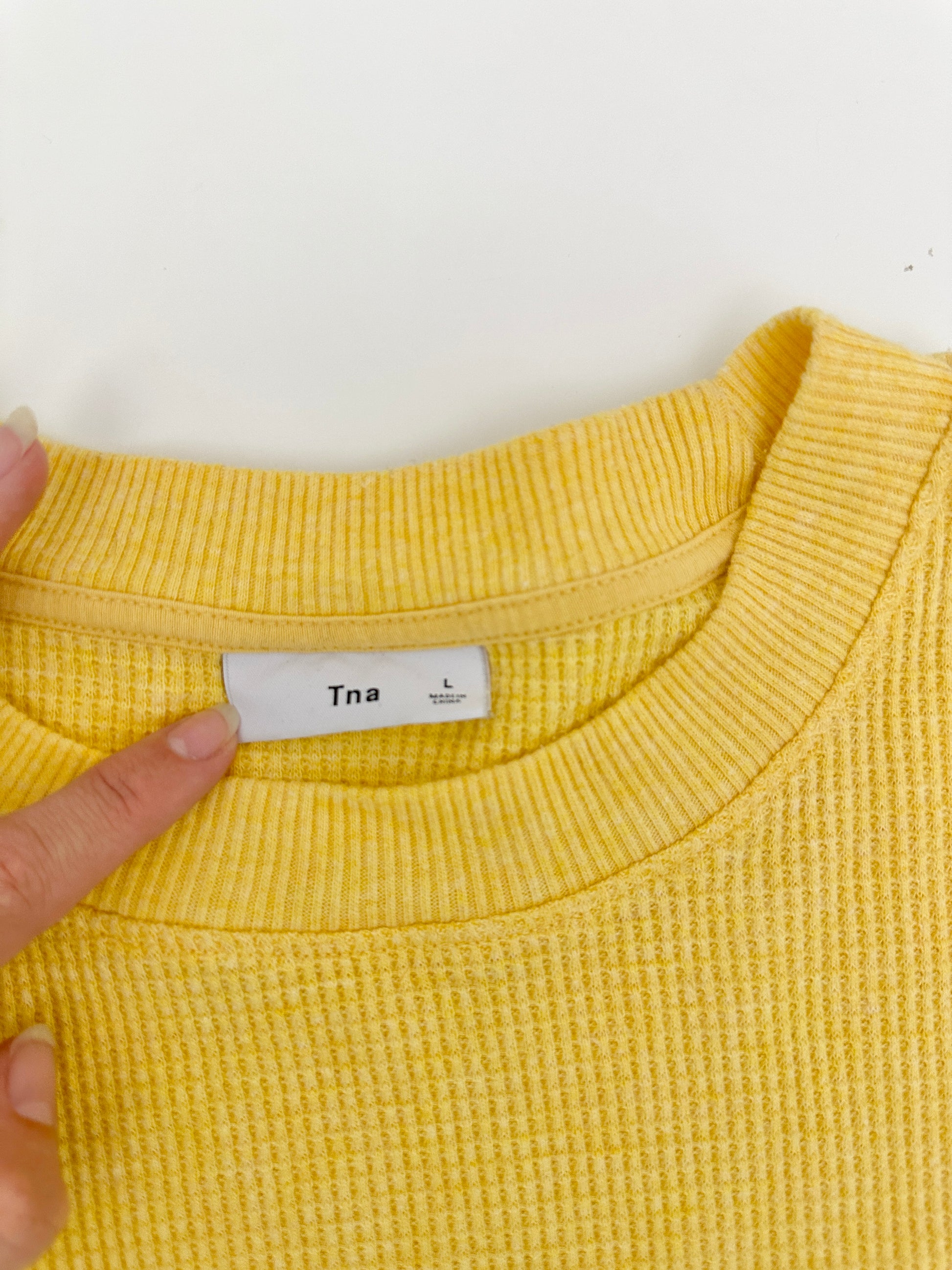 aritzia tna yellow waffle knit long sleeve (size large)