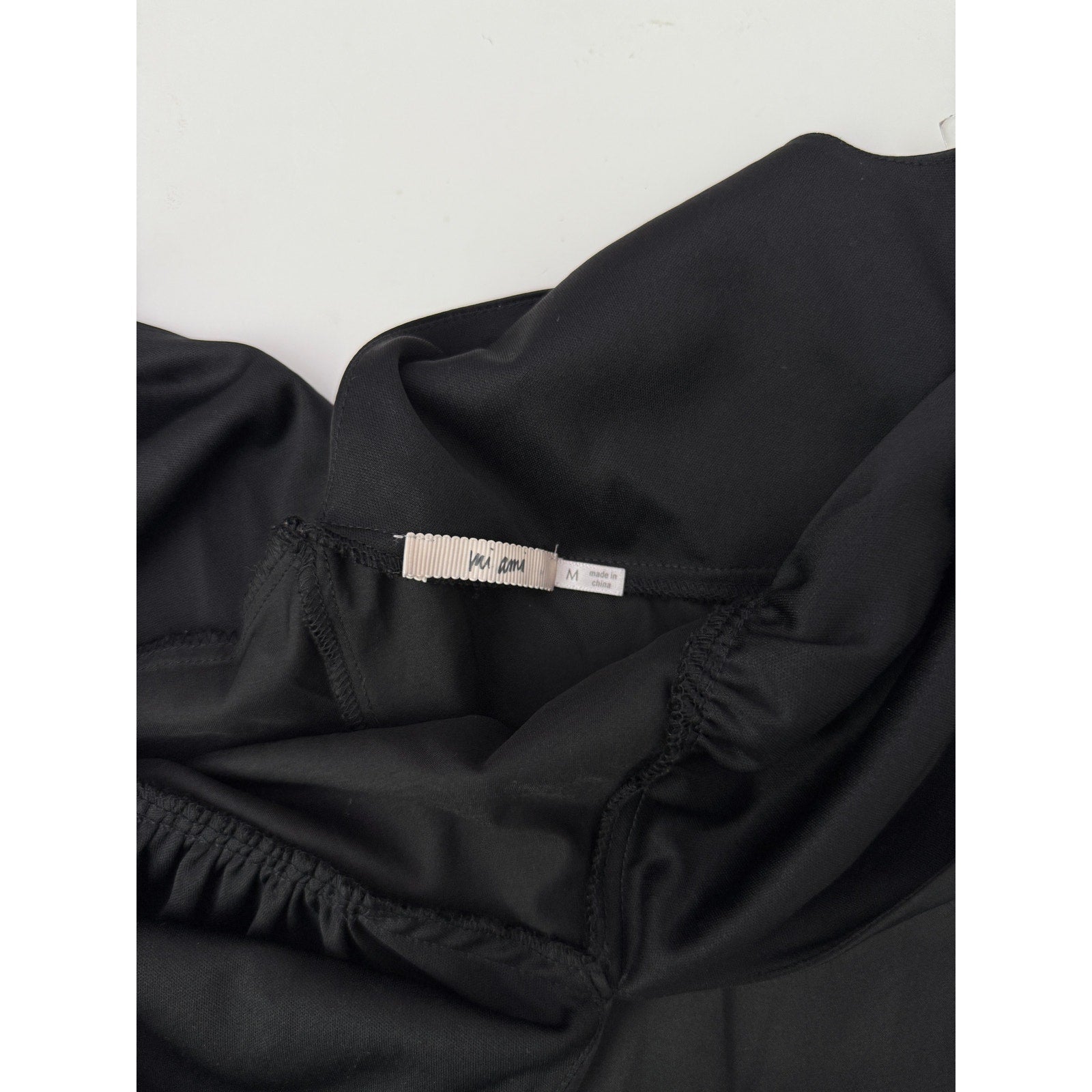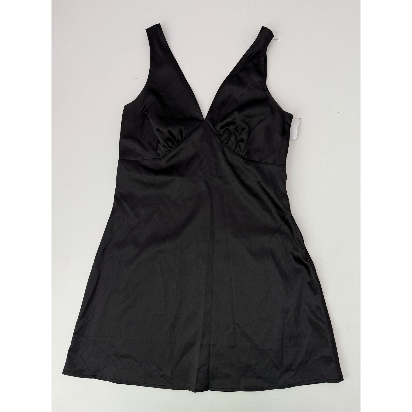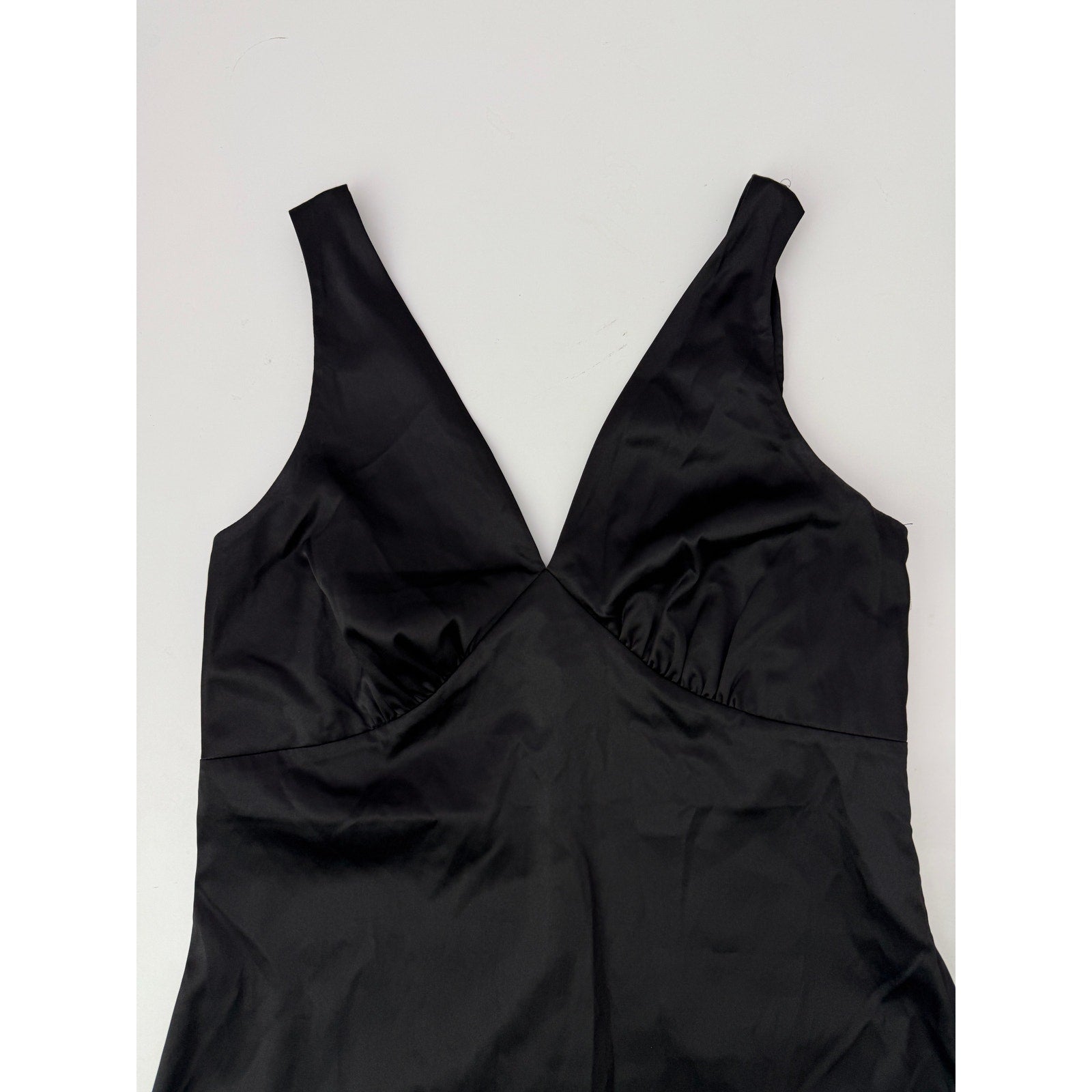 Mi Ami Black Satin V-Neck Mini Dress - Size Medium