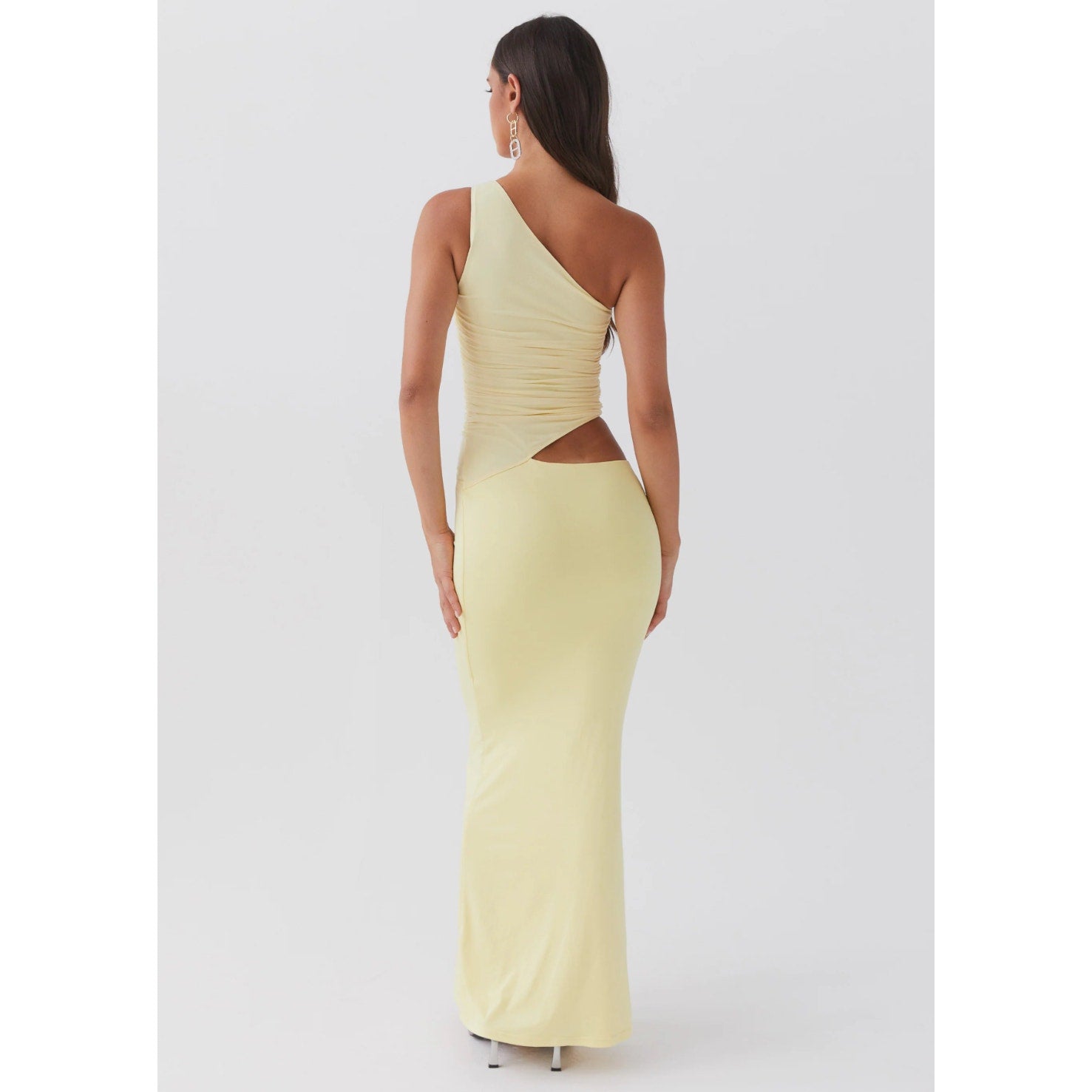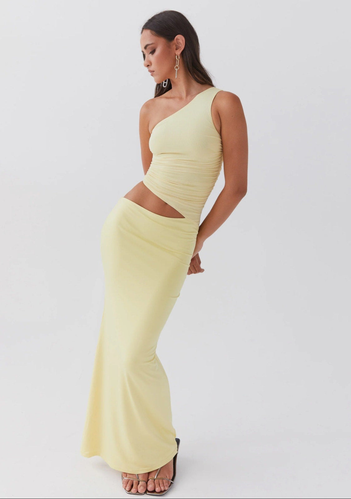 peppermayo yellow one shoulder maxi dress - size 4