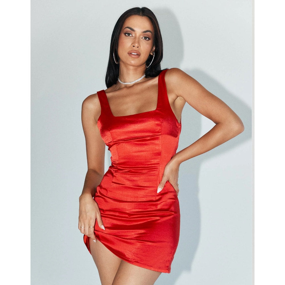 Princess polly red satin squareneck mini dress - size 4